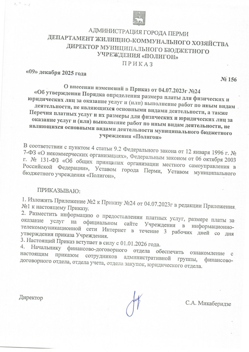 Опубликован Приказ 156 О внесении изменений в перечень иных платных услуг и размер их стоимости |