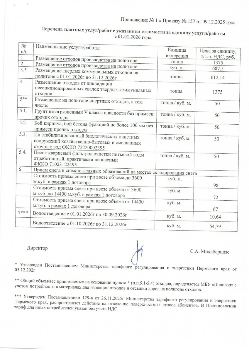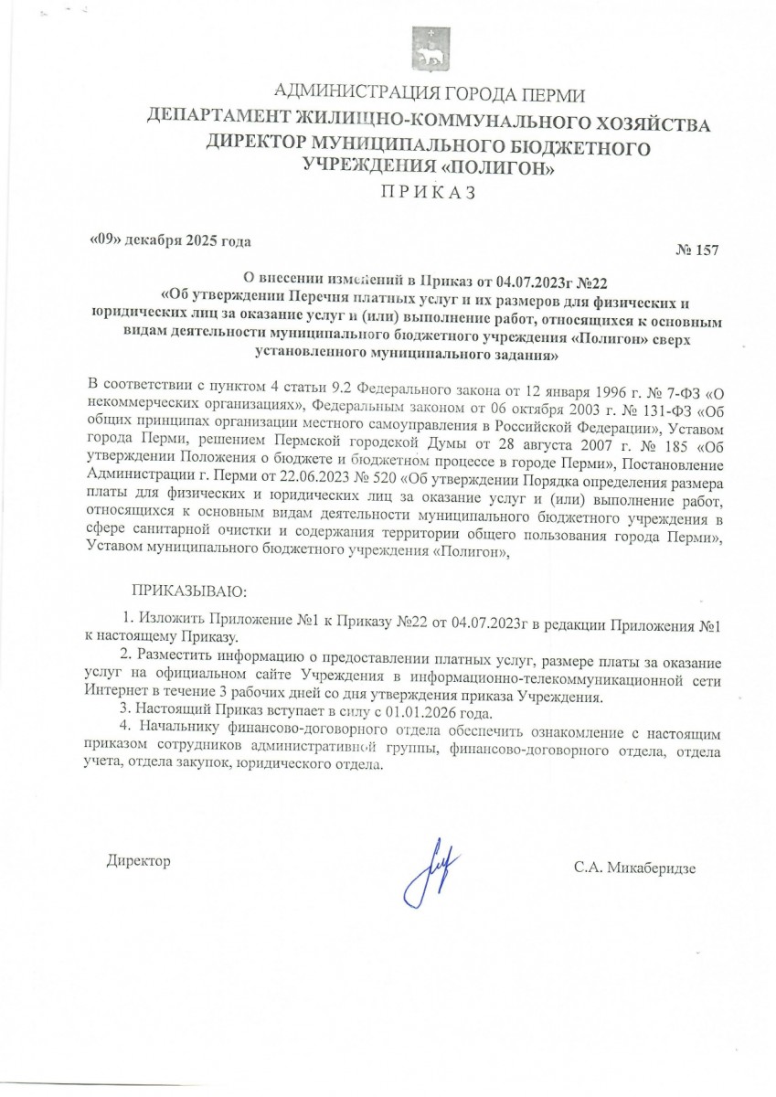 Опубликован Приказ 157 О внесении изменений в перечень платных услуг и размер их стоимости |